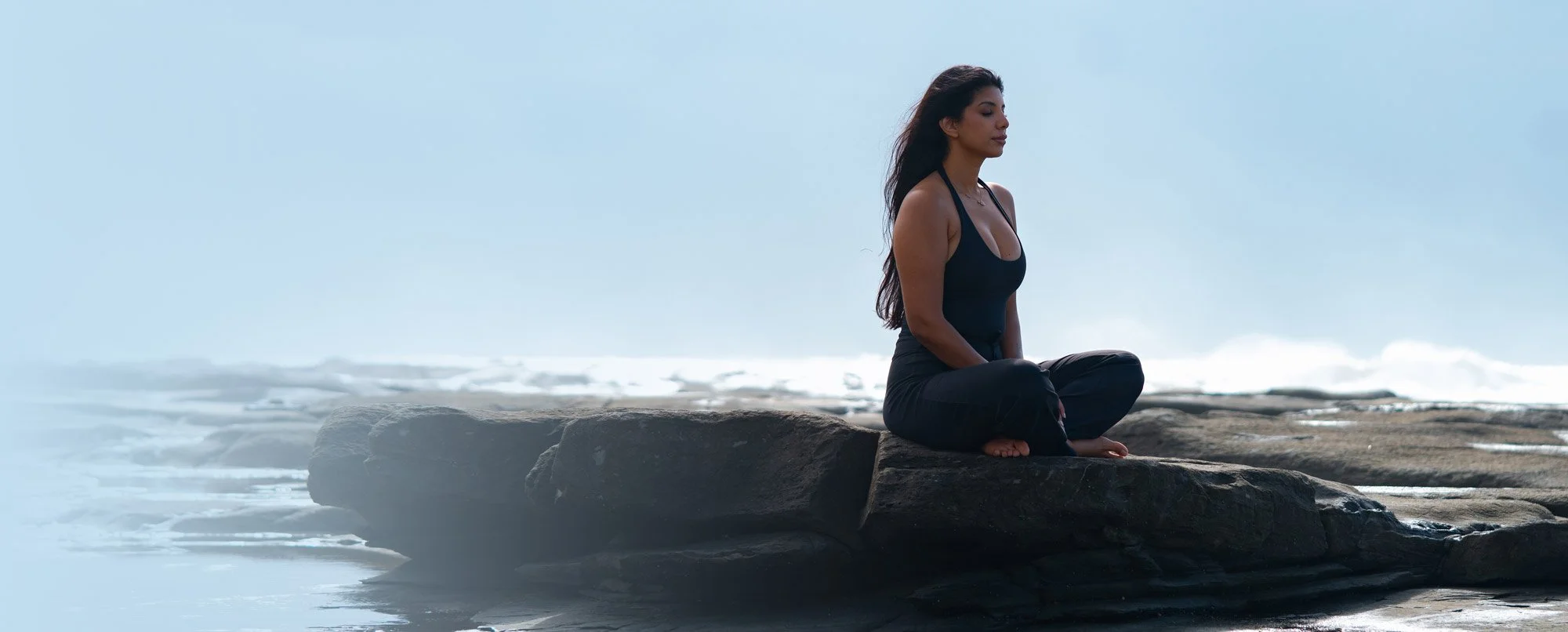 We begin by landing. Slowing the breath, quieting the noise, and becoming present in the body exactly as it is right now — no performance, no pretence.